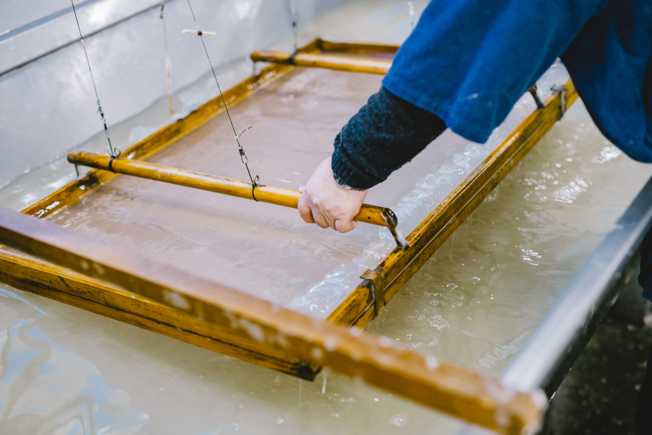 「いま全国で和紙屋さんも150〜160戸しかありません。僕が継いだ30年前に比べても3分の1にまで減っています。手漉き和紙の道具のほうはもっと厳しい。いま、漉き桁も、簀網屋さんも全国的に少なくなっていて、今後が心配されます」