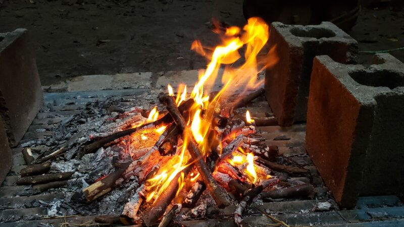 火を使用する場所は限定し、下には耐火レンガ、上にはトタン板が設置してあります。