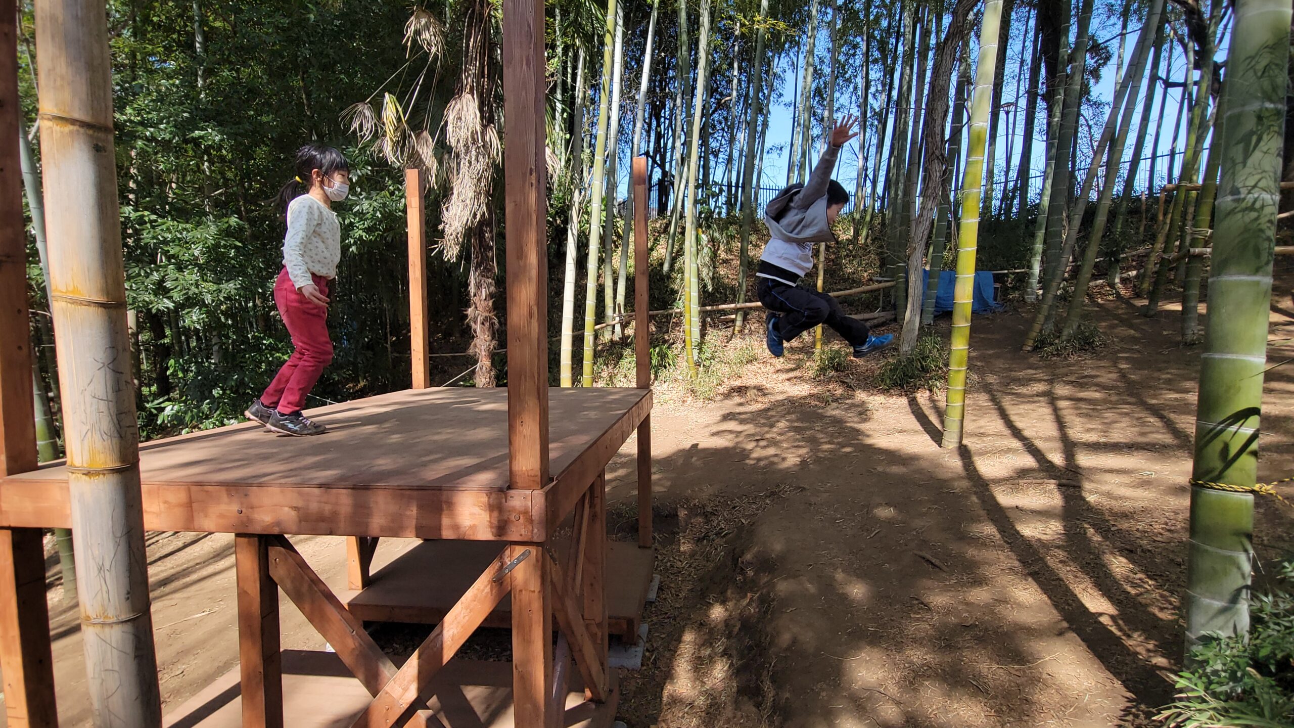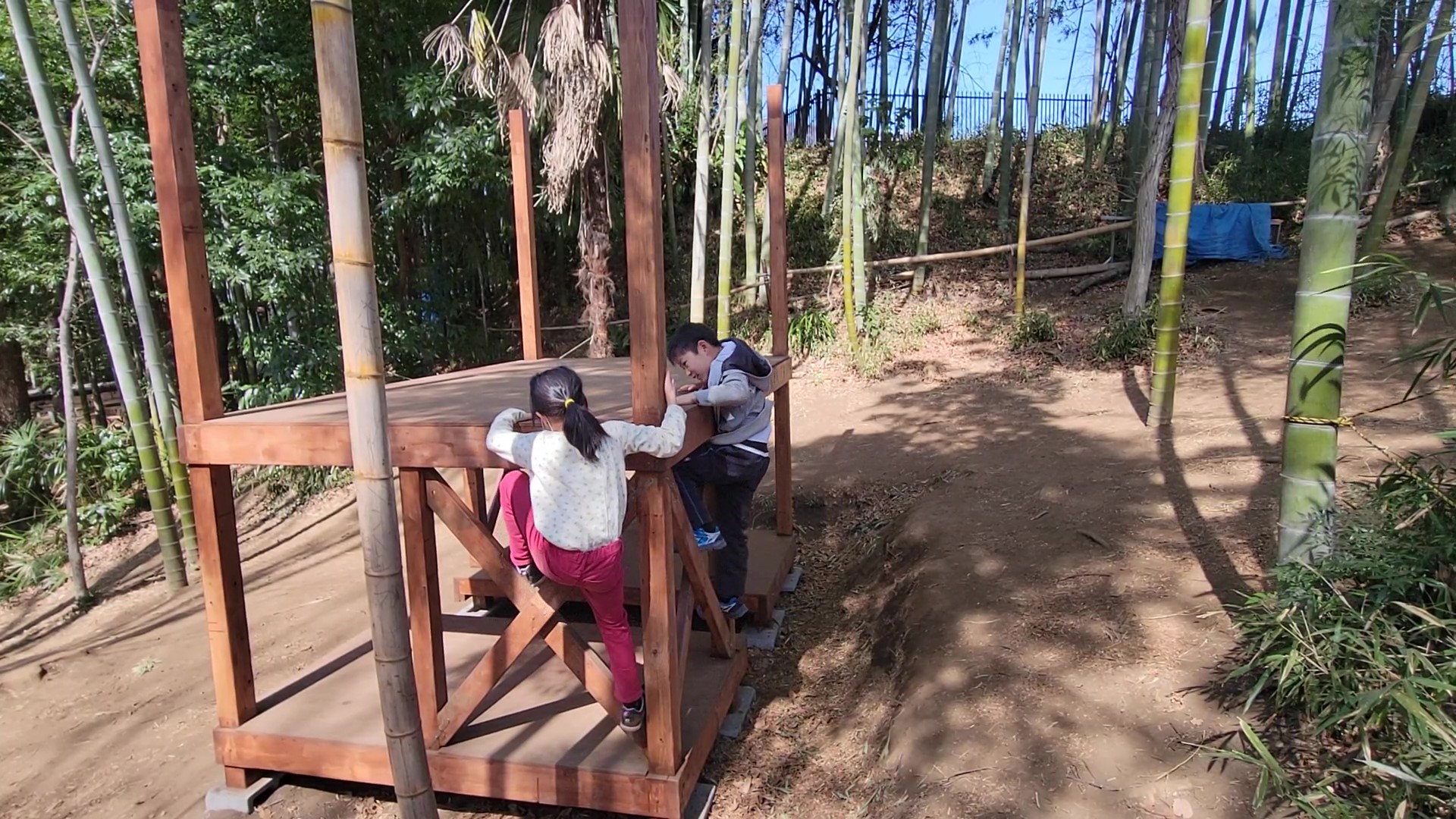 「1カ月半ぐらいは木こり作業の日々でした。鬱蒼とした林だったので、細めの雑木や竹を切ったり、斜面しかないから平らな場所や階段を設けたりと。その後に、遊具などを制作していきました。でも、ここは運営者側が全部つくって提供するというよりは、みんなでつくり合う遊び場なんです。なので、地域の人たちも、あそびに来るお父さんお母さんも、一緒にここをつくる仲間だと思っています」